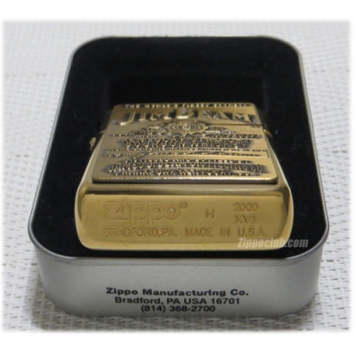 日本でも有名なアメリカのバーボン「ジム・ビーム」のZIPPOです。ジム・ビームのラベル部分が、文字が浮き上がるように立体的に加工されてています。金色に輝くハイポリッシュ・ブラスのZIPPOがベースになっています。